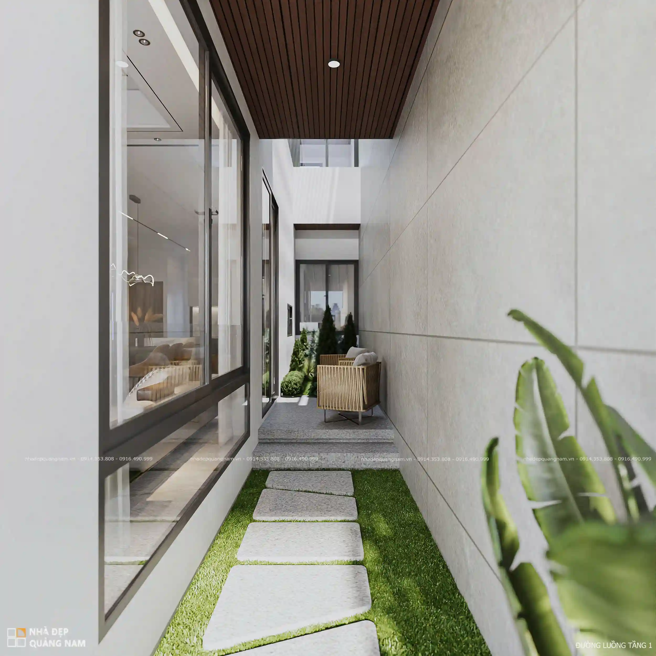 Trên diện tích 7x20m, VL House là minh chứng rõ nét cho triết lý thiết kế hiện đại – xanh thoáng. Nhờ bố trí nhiều khoảng xanh phía trước, sân sau và bên hông, kết hợp cùng hệ cửa kính lớn, ngôi nhà hình thành nên “dòng chảy” lưu thông ánh sáng và gió tự nhiên xuyên suốt từ đầu đến cuối nhà.