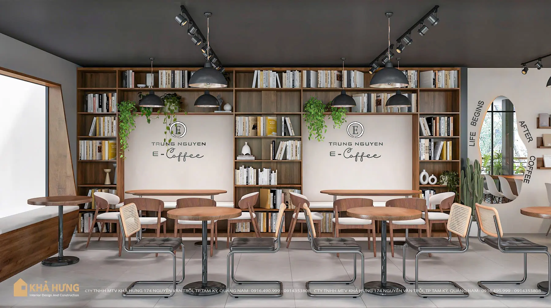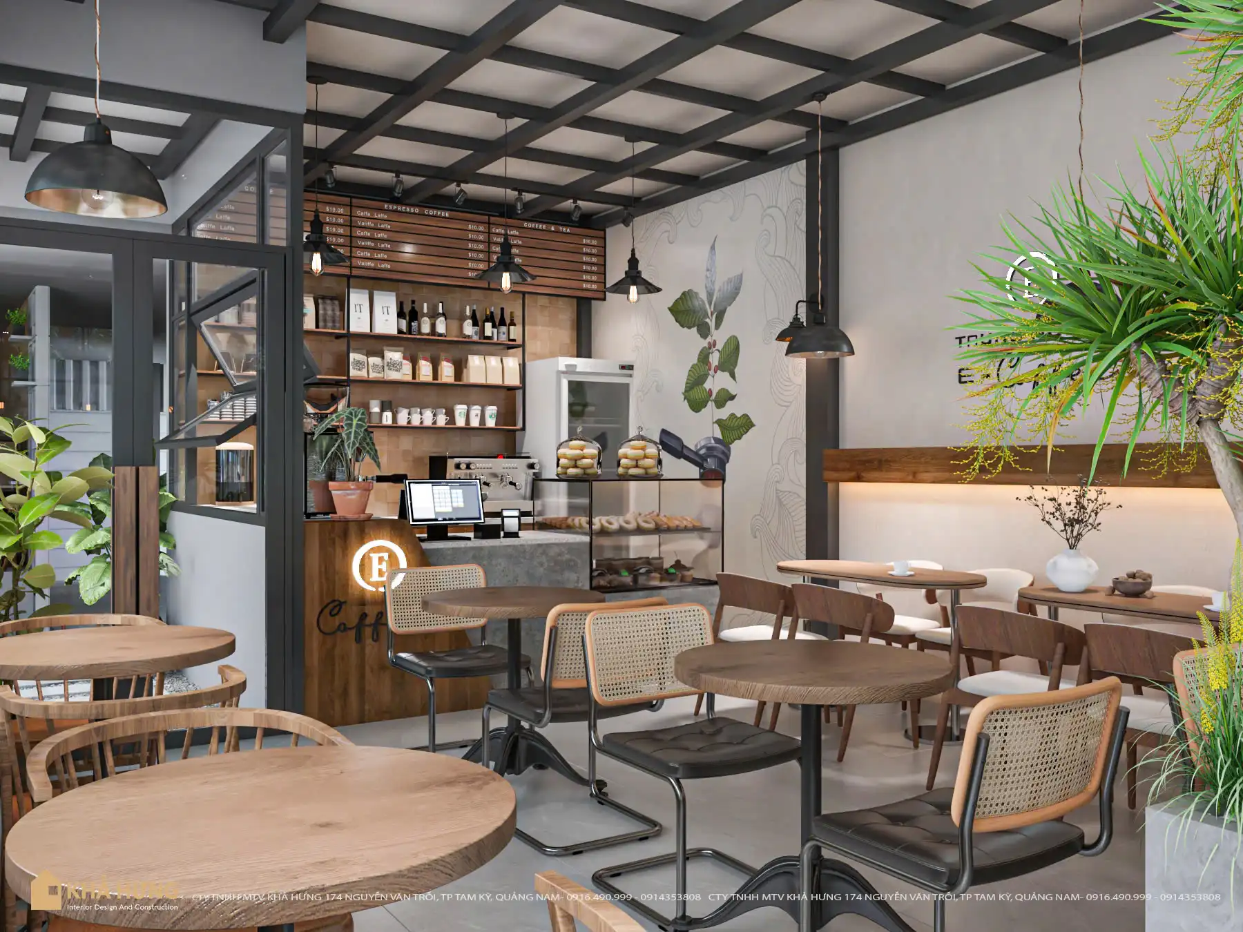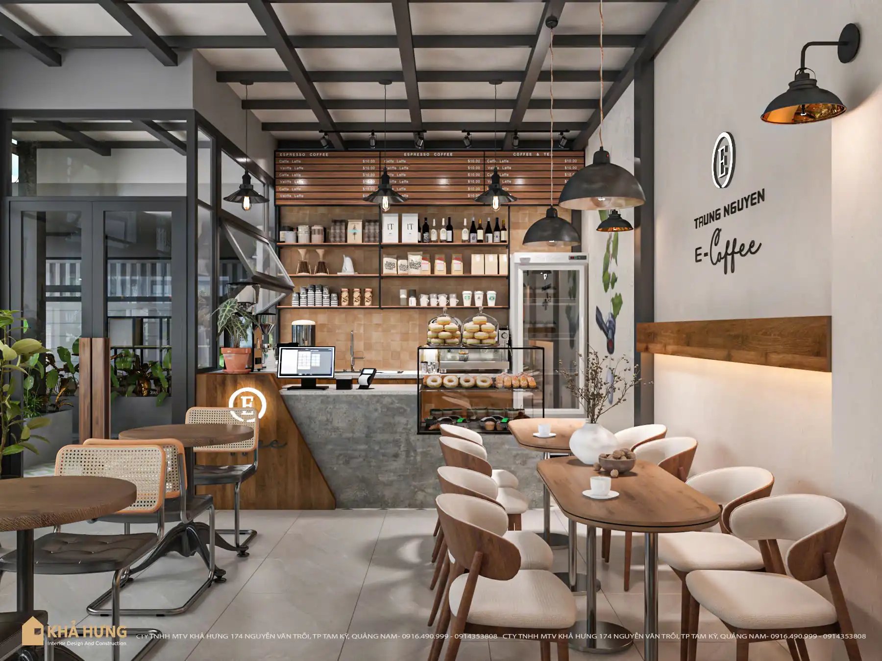 Từ bản vẽ đến thực tế, Khả Hưng cam kết mang lại không gian quán cafe đẹp, tiện nghi và bền vững theo thời gian.
