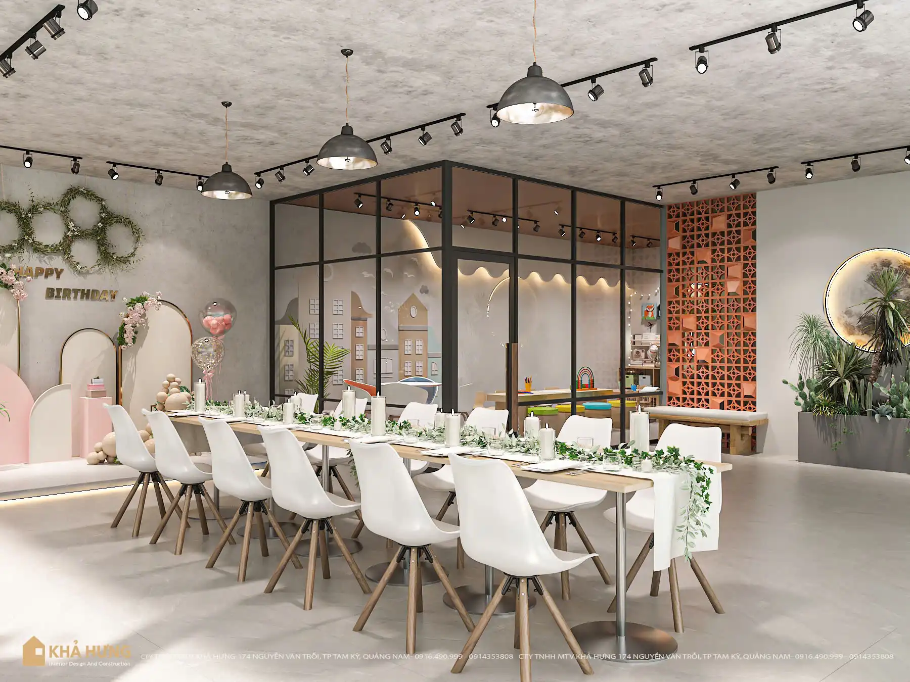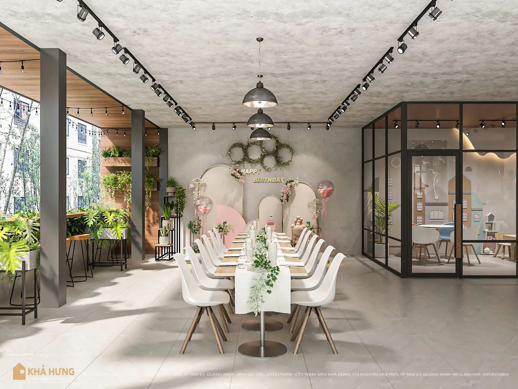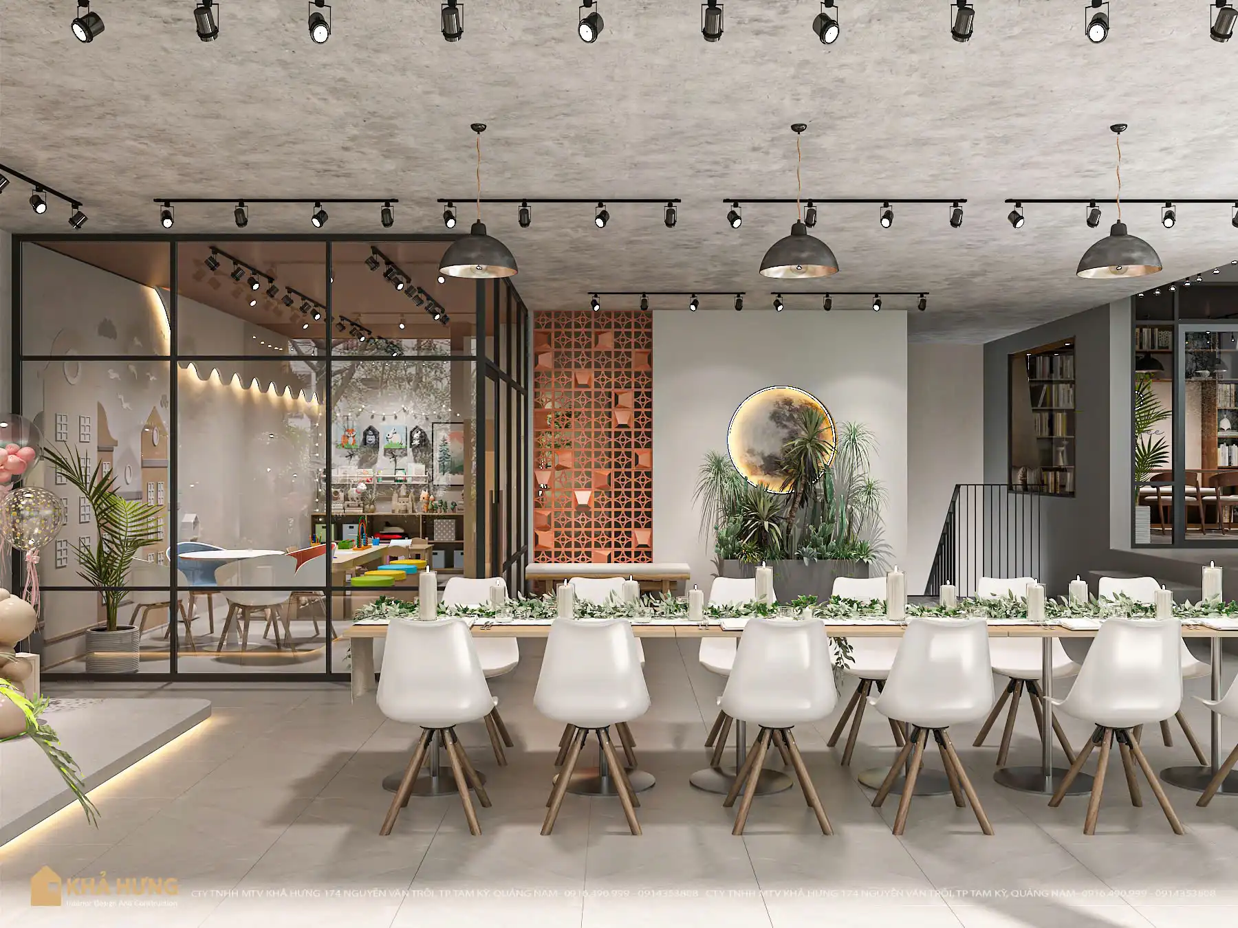 Thiết kế của Nội Thất Khả Hưng chú trọng tính linh hoạt – mỗi khu vực đều được tính toán để phục vụ nhiều nhóm khách hàng khác nhau: